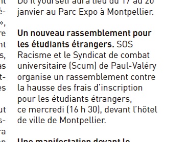 - Article du journal “Midi Libre du 18/12/2018 : https://www.midilibre.fr/2018/12/18/montpellier-continue-a-se-mobiliser-contre-les-frais-dinscription-pour-les-etudiants-etrangers,5667091.php