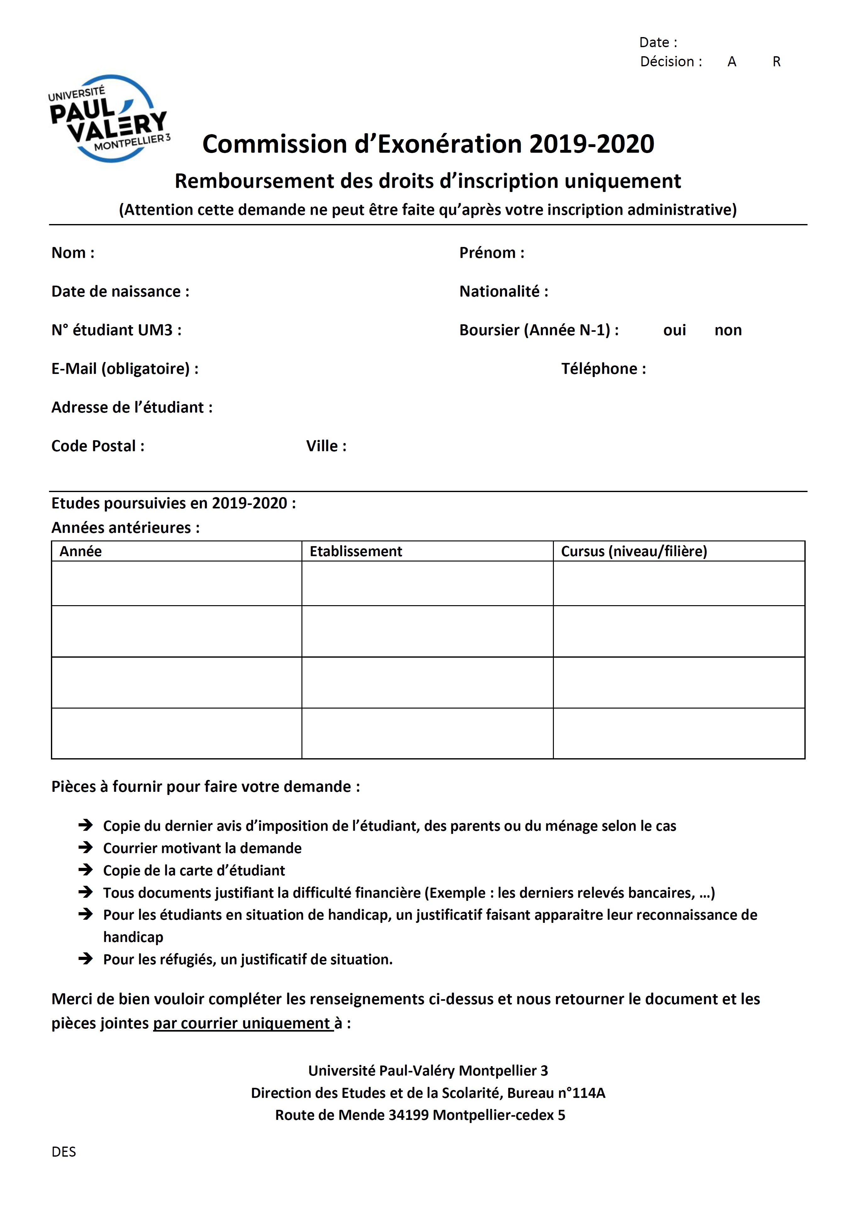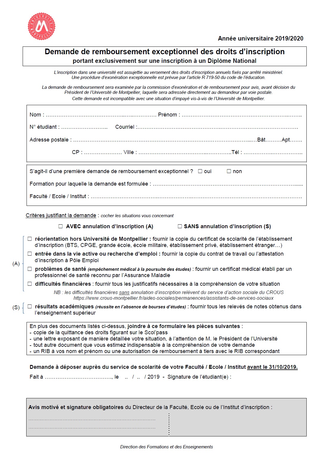 Je suis une étudiante université Paul valery Montpellier, et je voudrais savoir si possible de deposer mon dossier pour le remboursement de l’inscription.