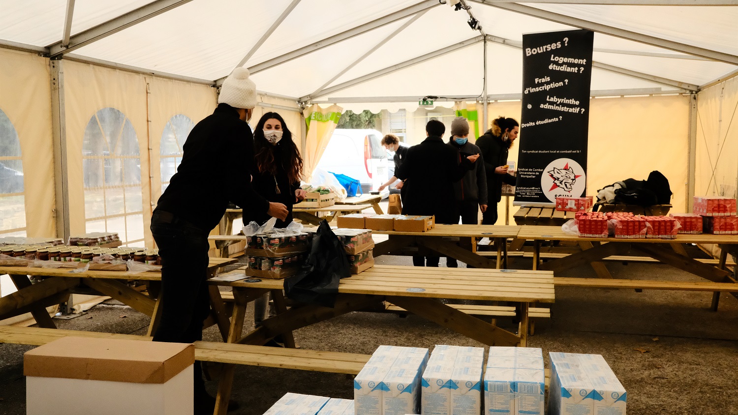 Face à cette situation, le Syndicat de Combat Universitaire de Montpellier (SCUM) s’est associé avec la Banque Alimentaire 34 et le CROUS Montpellier Occitanie afin d’organiser des distributions alimentaires gratuites en faveur des étudiants précaires.