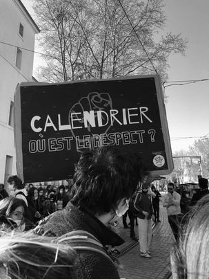 Au niveau local, deux problèmes à l’Université Paul Valéry, révélateurs de l’absence de respect pour les étudiants, ont aussi mobilisé un grand nombre d’entre-nous ce mardi 16 mars : la mise en place des partiels en présentiel (contre lequel plus de 8000 étudiants ont signé la pétition du SCUM), et la mise en place du nouveau calendrier universitaire. Ce nouveau calendrier transforme les vacances de Noël et du second semestre en semaine de révision et place la seconde évaluation du premier semestre en plein milieu du second semestre, au mois de mars. Les étudiants qui comptaient sur les vacances pour se payer leurs études, et ceux qui comptaient sur les secondes évaluations pour améliorer leur notes, se retrouvent sacrifiés au prétexte que certains enseignants refuseraient de corriger leurs copies en temps et en heure.