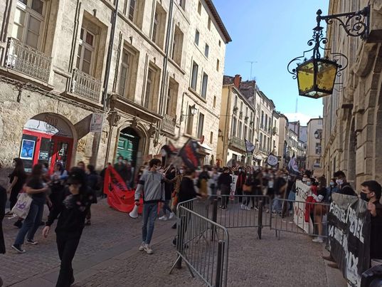 Mais au-delà de ces agissements miliciens, la journée de mobilisation s’est terminée sur le campus de Paul Valéry. Le bâtiment de la présidence a été spontanément bloqué par les étudiantes et étudiants qui exigeaient de pouvoir parler directement à la présidente Anne Fraïsse des conséquences du nouveau calendrier et des examens en présentiel. Ce n’est que vers 20h que le blocage fut levé, lorsque Anne Fraïsse est sortie du bâtiment. Les étudiantes et étudiants ont pu enfin se faire entendre de la présidence, sans filtre. Cette dernière a certes continué à défendre les improbables bienfaits de ce calendrier, mais s’est montrée ouverte à une « remise à plat » du calendrier pour l’année 2022-2023. En ce qui concerne la question des examens, elle a reconnu les difficultés qu’ils engendrent, mais sans apporter de réponse concrète pour le moment.