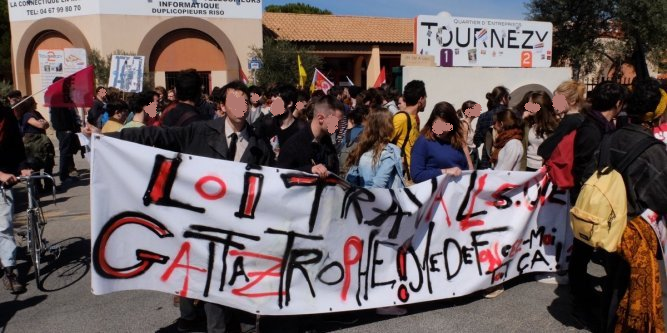 Jeudi 24 mars, à l’occasion de la journée nationale de mobilisation contre le projet de “Loi Travail”, des piquets de grève avaient été disposés devant tous les bâtiments de l’Université Paul Valéry – Montpellier 3. Une manifestation de près de 300 étudiants, rejoints par quelques lycéens, a ensuite traversé la ville en fin de matinée jusqu’au siège départemental du MEDEF, qui a été bloqué.