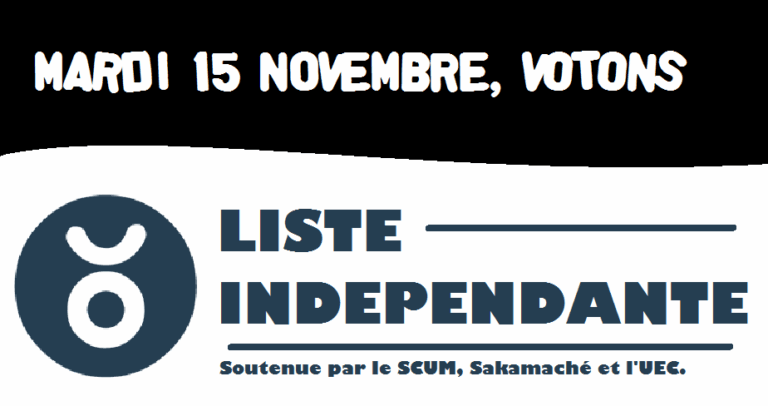 A l’occasion des élections aux Conseils Centraux de l’Université de Montpellier, qui se sont déroulées le 15 novembre, le Syndicat de Combat Universitaire de Montpellier (SCUM) a participé, aux côtés notamment de l’UEC, à la « Liste Indépendante » qui s’est présentée…