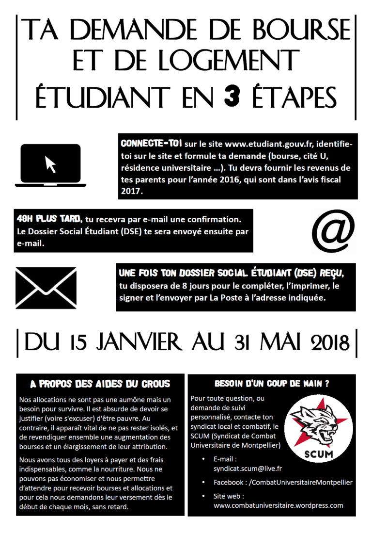 Face au renforcement de la sélection sociale et raciste à l’université, et plus largement face à l’explosion de la précarité, le SCUM continuera à se mobiliser et construire des rapports de forces offensifs et gagnants. Dans cette perspective, le syndicat…