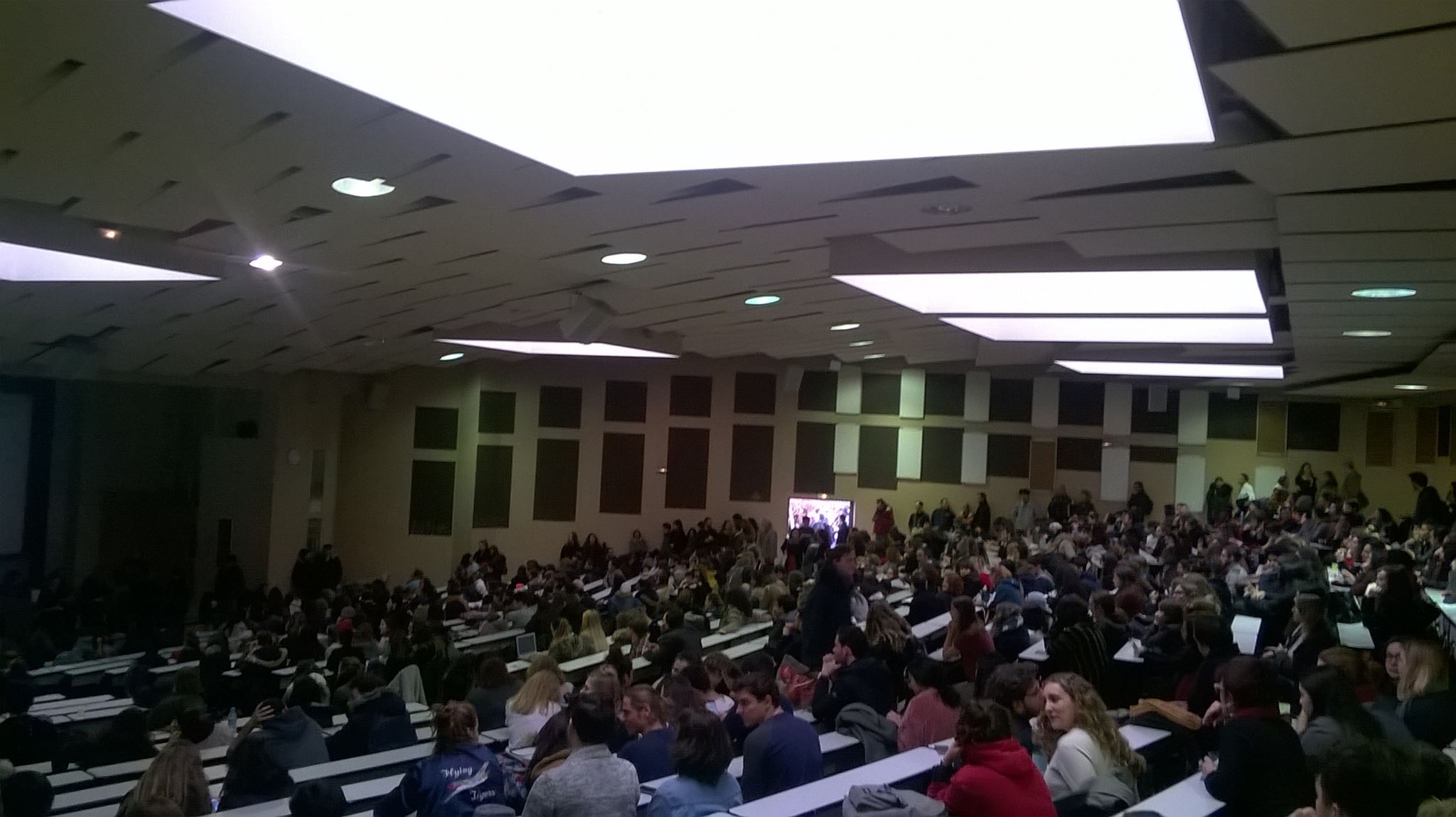 Les personnes présentes ont massivement voté en faveur de la poursuite du mouvement de blocage de l’université jusqu’au mardi 27 février inclus (une Assemblée Générale se tiendra lundi 26 à 10h dans l’amphi A). Si la revendication contre le « Plan Étudiants » a été largement reprise, il est urgent d’accentuer la mobilisation contre la sélection sociale et élitiste. A l’université Paul Valéry – Montpellier 3, la direction a décidé, dans la perspective d’un « Plan étudiant » toujours pas voté au parlement, de mettre en place les « attendus locaux ». Ces « attendus » sont les critères de tri décidés le 9 janvier par le CEVU (Conseil des Études et de la Vie Universitaire), une instance dirigeante de l’université et confirmé dans cette même instance la semaine dernière. Ce véritable tri sélectif, décidé par la direction de l’université malgré l’opposition vigoureuse des élus SCUM et indépendants, revient à jeter sur le carreau de nombreux bacheliers. Il apparaît ainsi possible et nécessaire de s’organiser afin de contraindre la direction de notre université à retirer les quotas et critères de sélection qu’elle a décidé de mettre en place. Car au-delà du « Plan étudiants » ou de la sélection pratiquée par les directions d’établissement, c’est la question de la précarisation généralisée de secteurs entiers de la population qui se pose. La baisse récente des APL et l’application des deux récentes « Loi travail » entrent dans cette dynamique.