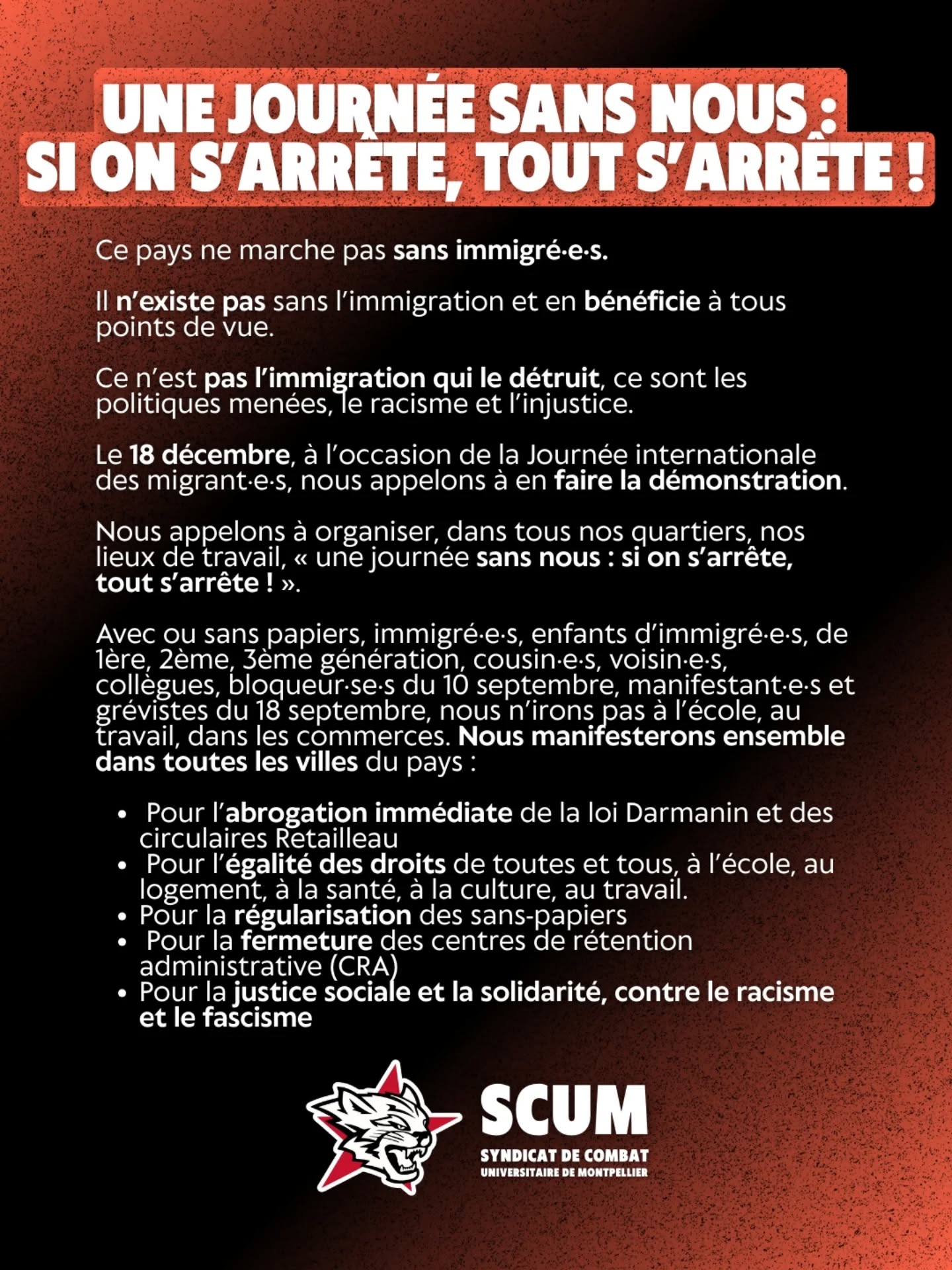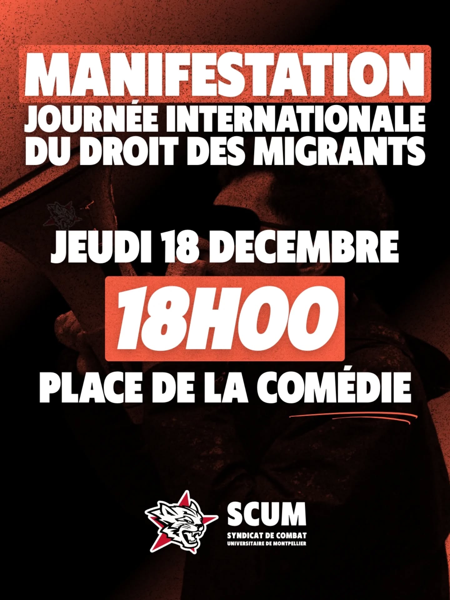 Toutes et tous dans la rue ce Jeudi 18 Décembre à 18h place de la comédie à Montpellier pour défendre les droits des immigrés.